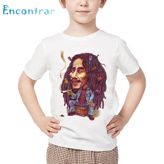 Bob Marley T-Shirt🇯🇲: Kids Jamaica Singer Bob Marley Reggae Rastafari Print T shirt Children Summer White Tops Boys and Girls Casual T-shirt,HKP4118