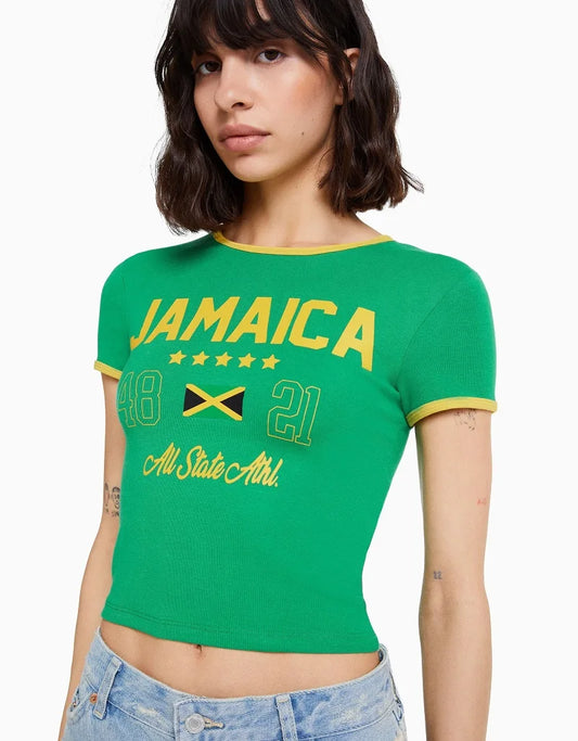 Jamaica T-Shirt🇯🇲: Aesthetic Women's JAMAICA Letter Printed Gothic Cut Top Street Wear Baby T-shirt Retro Casual Short Sleeve T-shirt Y2k Clothing