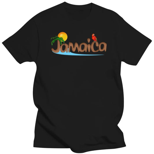 Jamaica T-Shirt🇯🇲: JAMAICA SUN T-shirt Men 3D Letter Tshirt Holiday Family Tops Summer Gift Tees Parrot Print Simple Clothing Black T Shirt Fitness