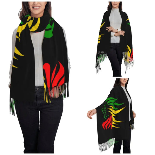 Reggae Scarf🇯🇲: Women's Scarf with Tassel Rasta Lion Rastafari Jamaica Judah Large Winter Fall Shawl Wrap Daily Wear Pashmina Scarves