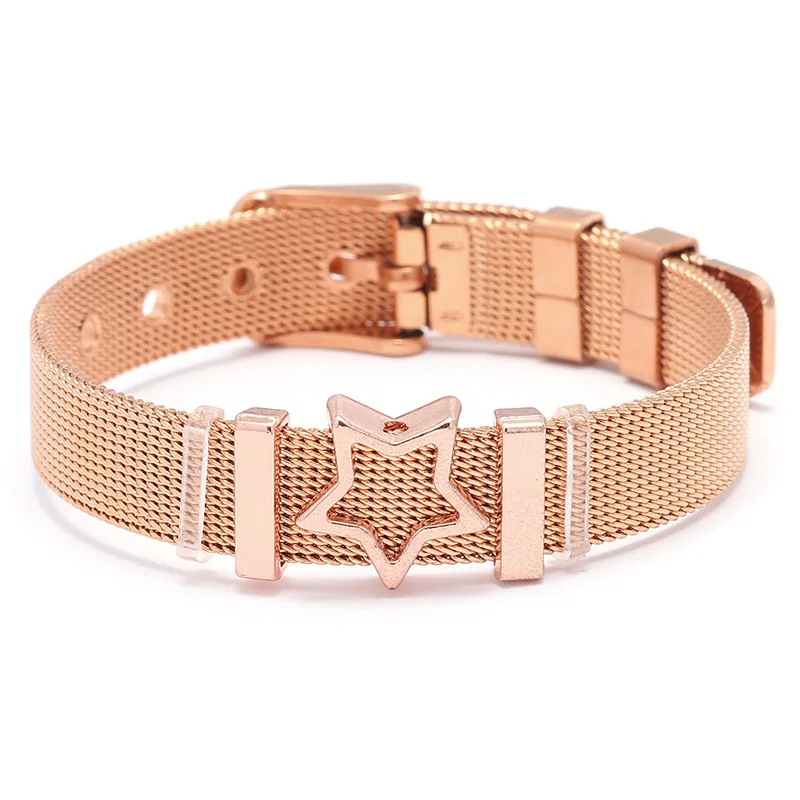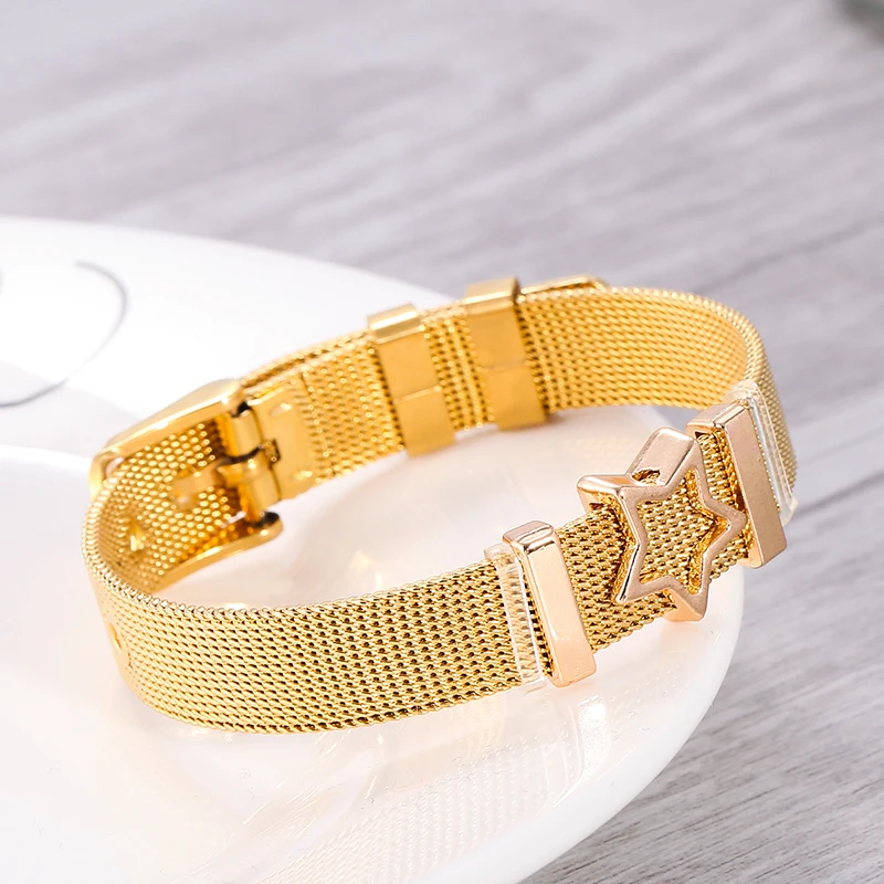 BAOPON Hot Selling Women Stylish Mesh Fine Bracelet Rhinestone Five Star Adjusted Stainless Steel Keeper Charm Bracelets Gift