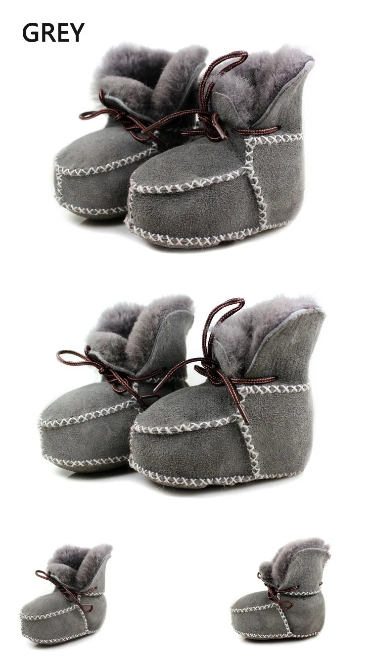 FUR123 Winter Baby Shoes Boots Infants Warm Shoes Fur Wool Girls Baby Booties Sheepskin Genuine Leather Boy Baby Boots